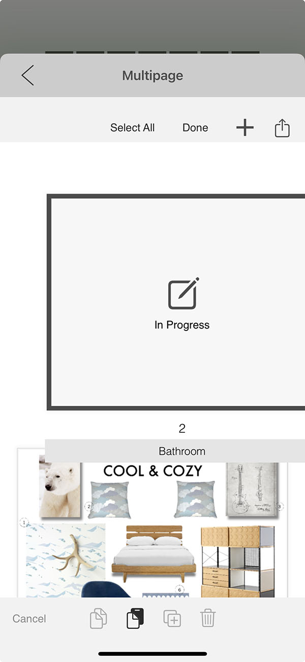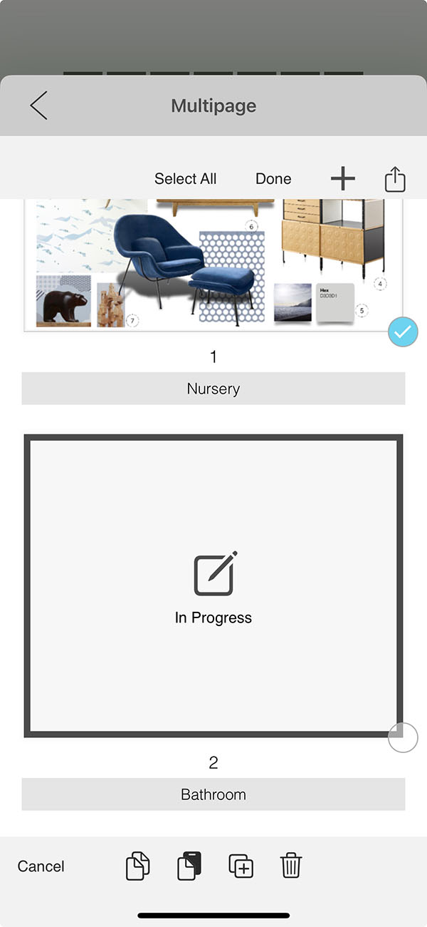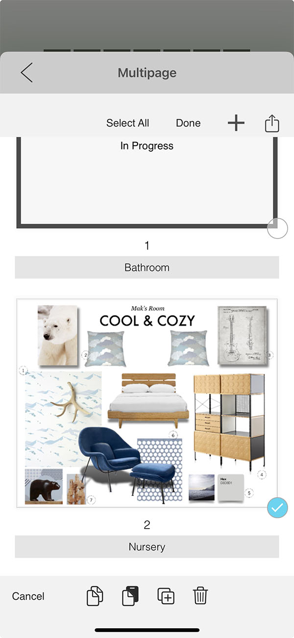 With Multipage in Morpholio Board, you can create interior design presentation decks, iterate through different design options, or compile multiple moodboards for different room designs in the same project. You can easily copy and paste between boards and edit your pages as needed.