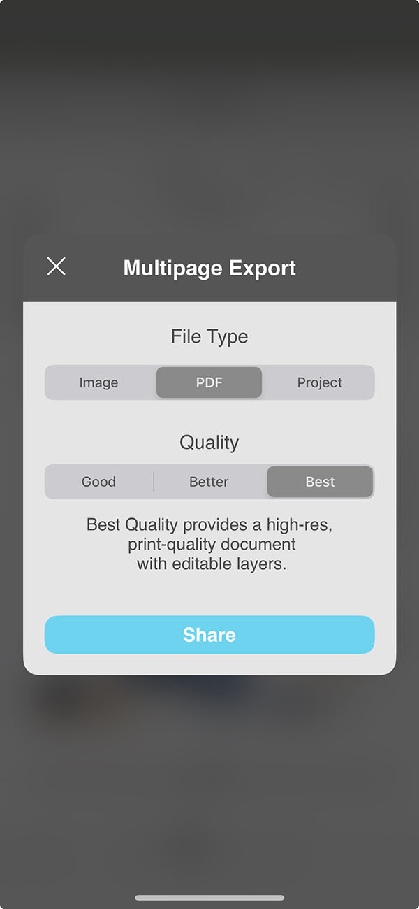 You can choose to export your boards as separate image files, a single PDF, or a project file with all your pages.