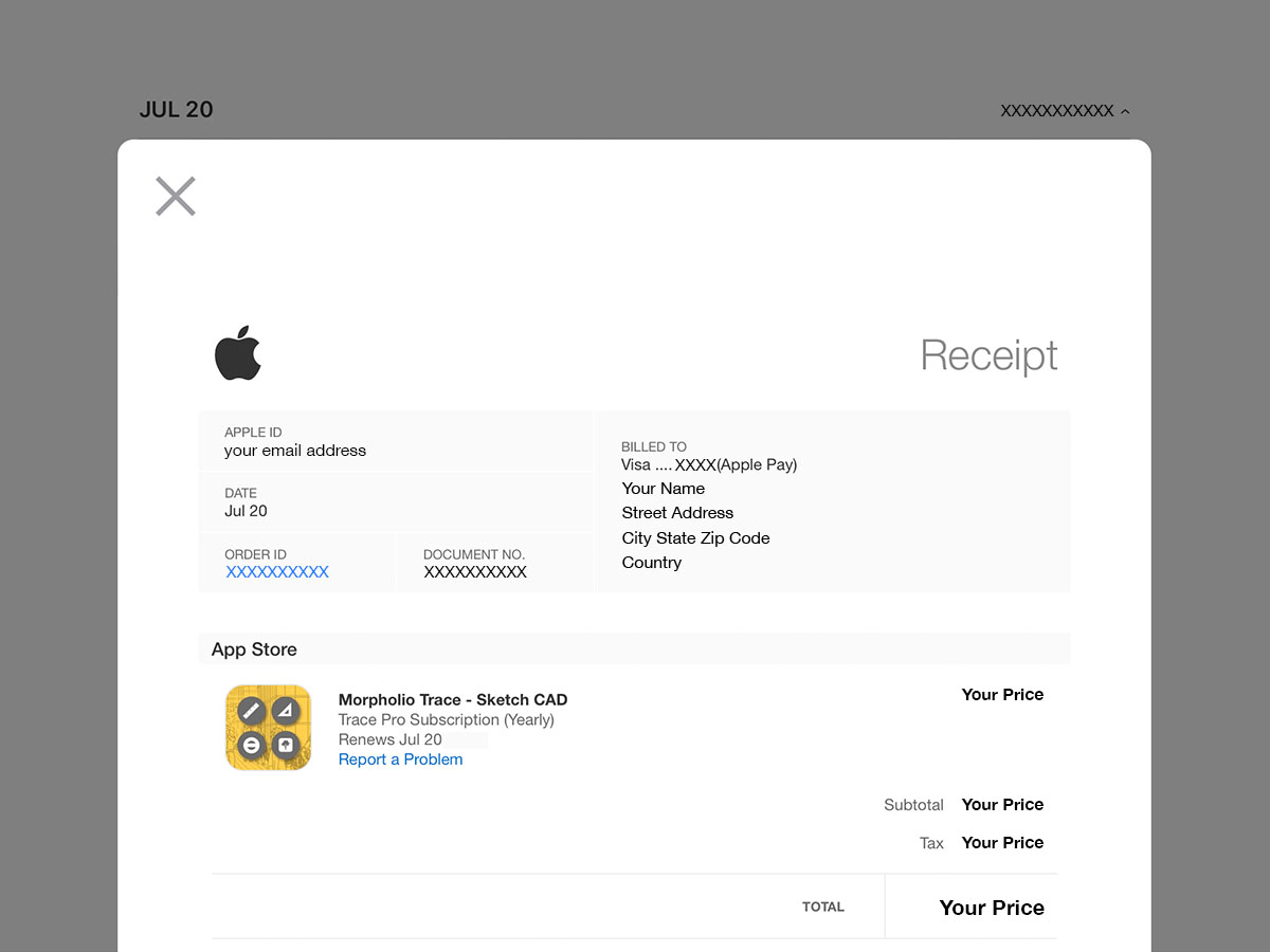 If you work at an office, your company may be willing to reimburse the cost of your subscription. If they haven't offered, it never hurts to ask! Typically, they will need a receipt or invoice for your subscription purchase to begin this reimbursement. You can follow the steps below to get a receipt for your subscription from Apple since Morpholio does not handle any billing directly.