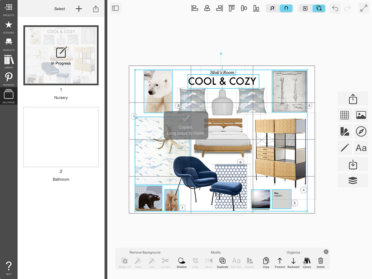 While working on interior design boards, you often need to copy one or several images from one board to another. You can quickly and easily do this in Morpholio Board.