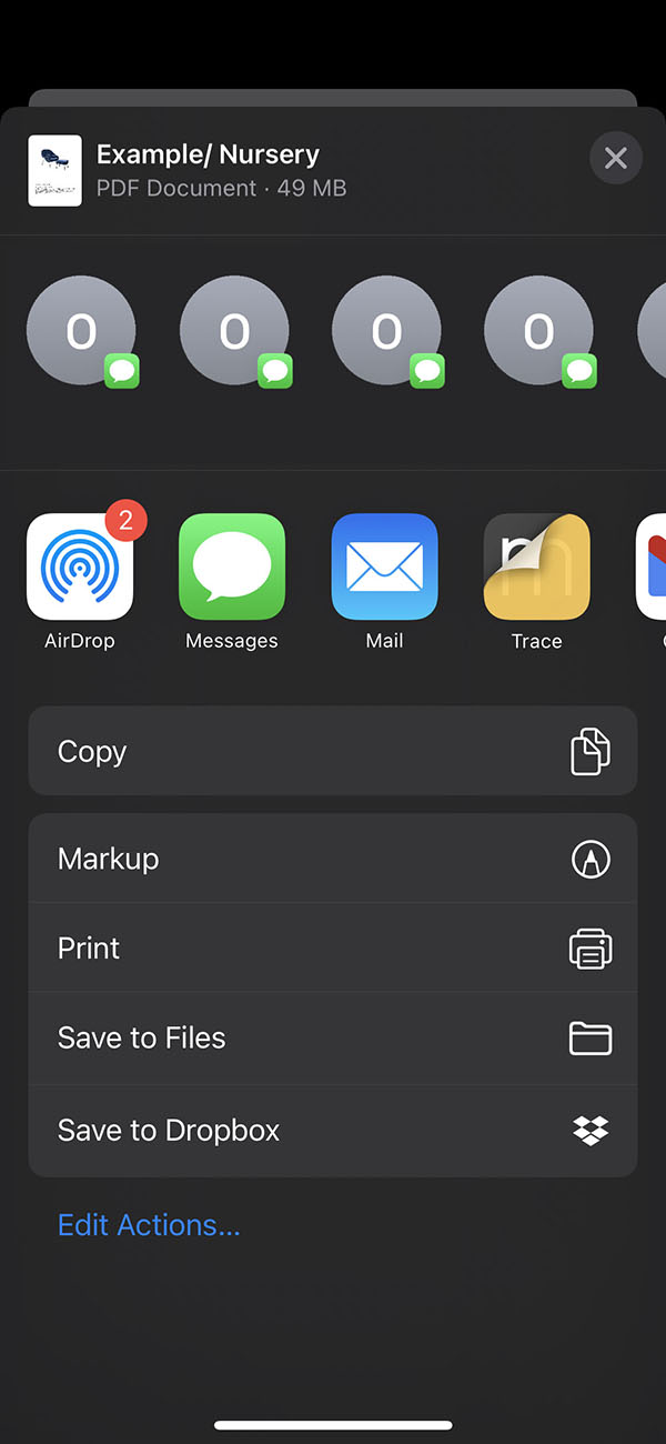 Share the PDF file of your cut sheets through AirDrop, email, or messages.