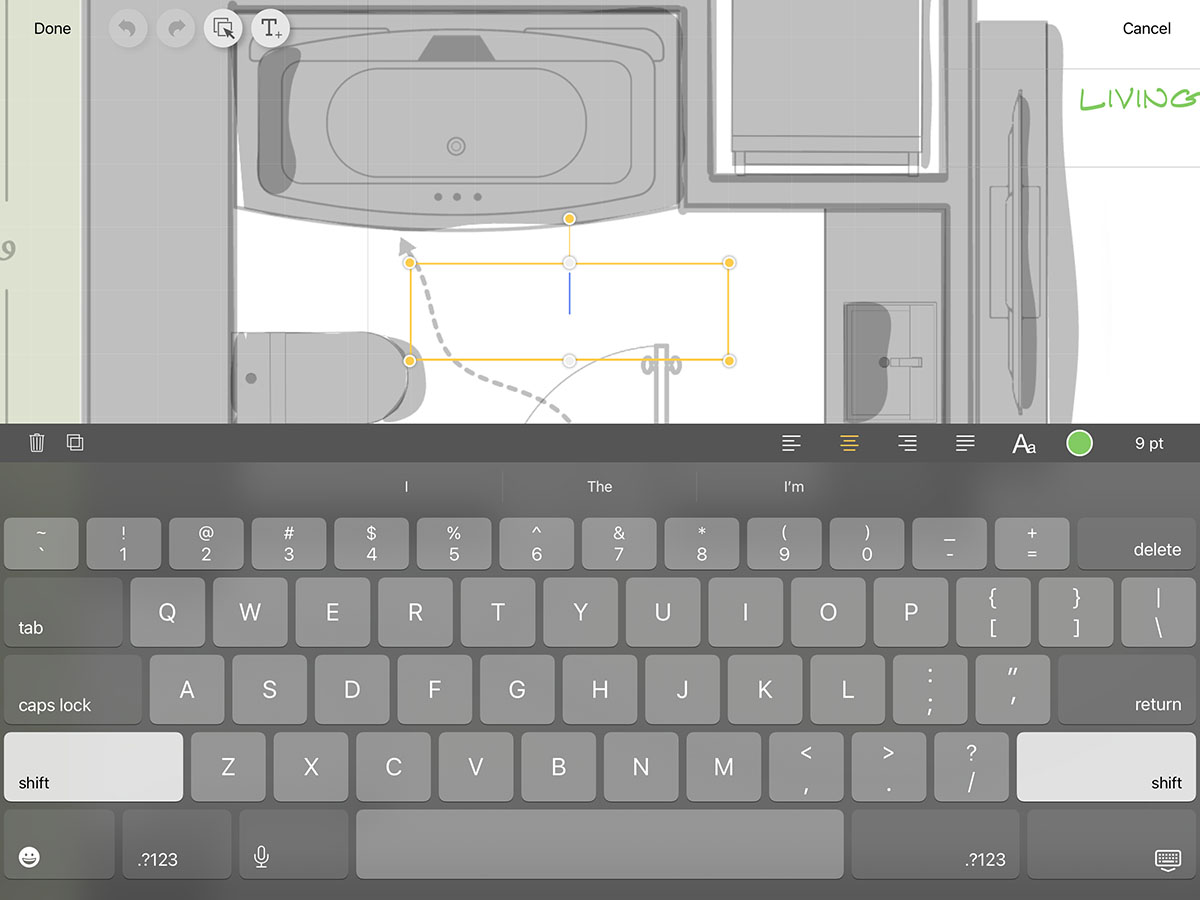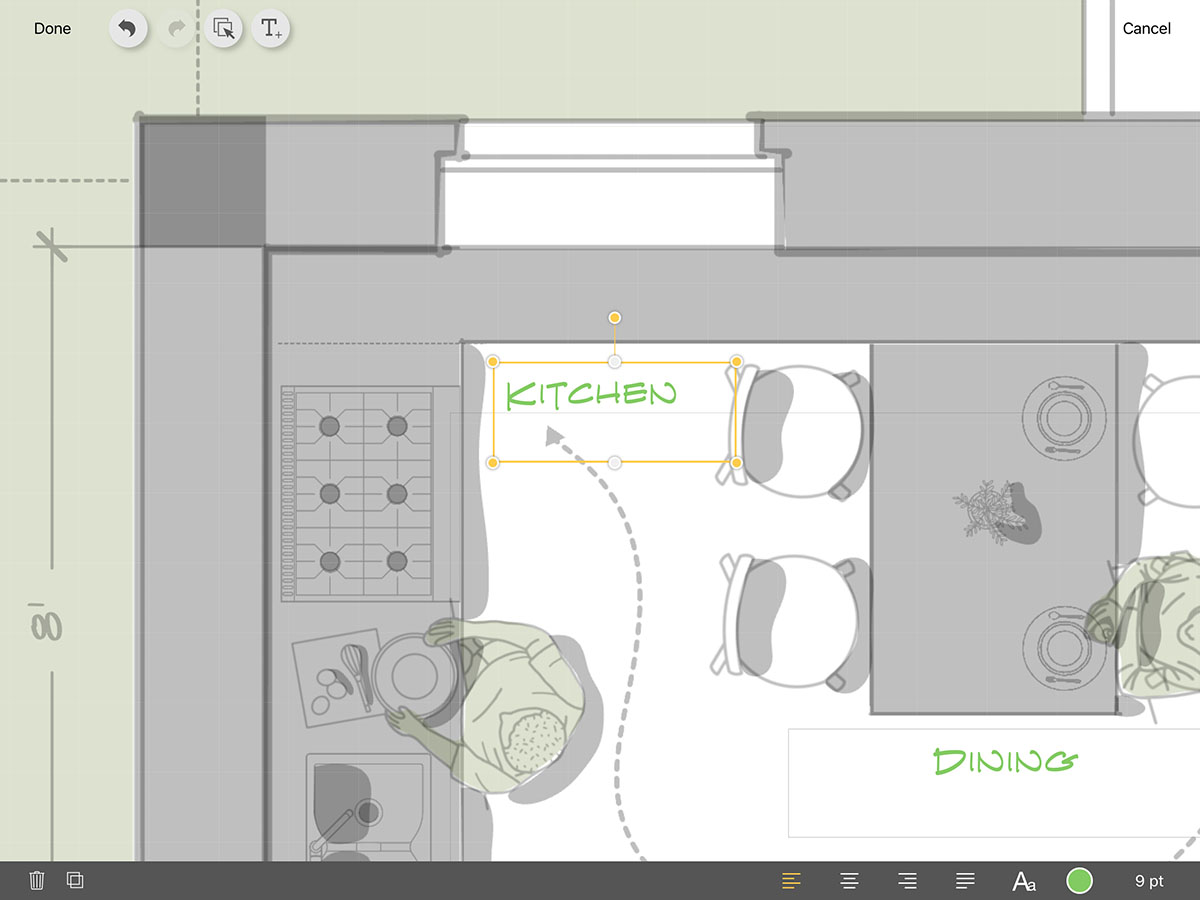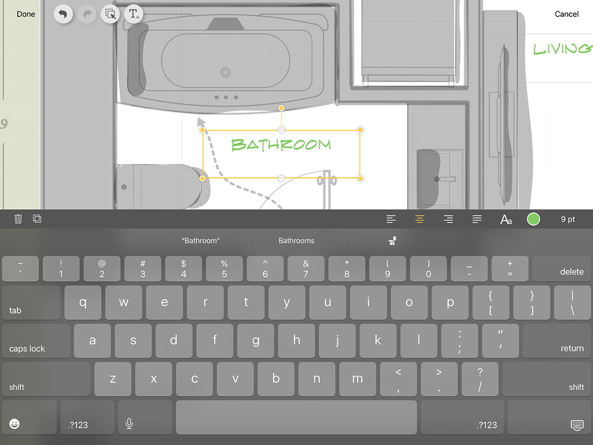 Tap "Done" to save your changes, close the Text Edit Mode, and return to your drawing. If you tap "Cancel," you will discard all changes.