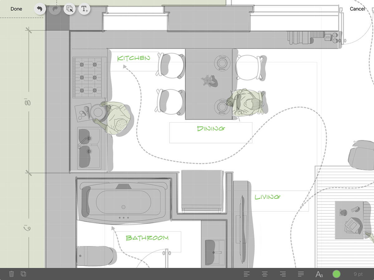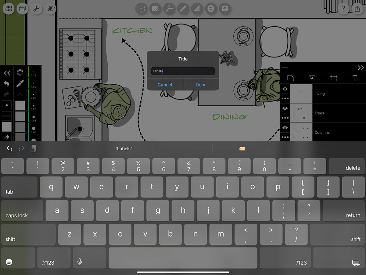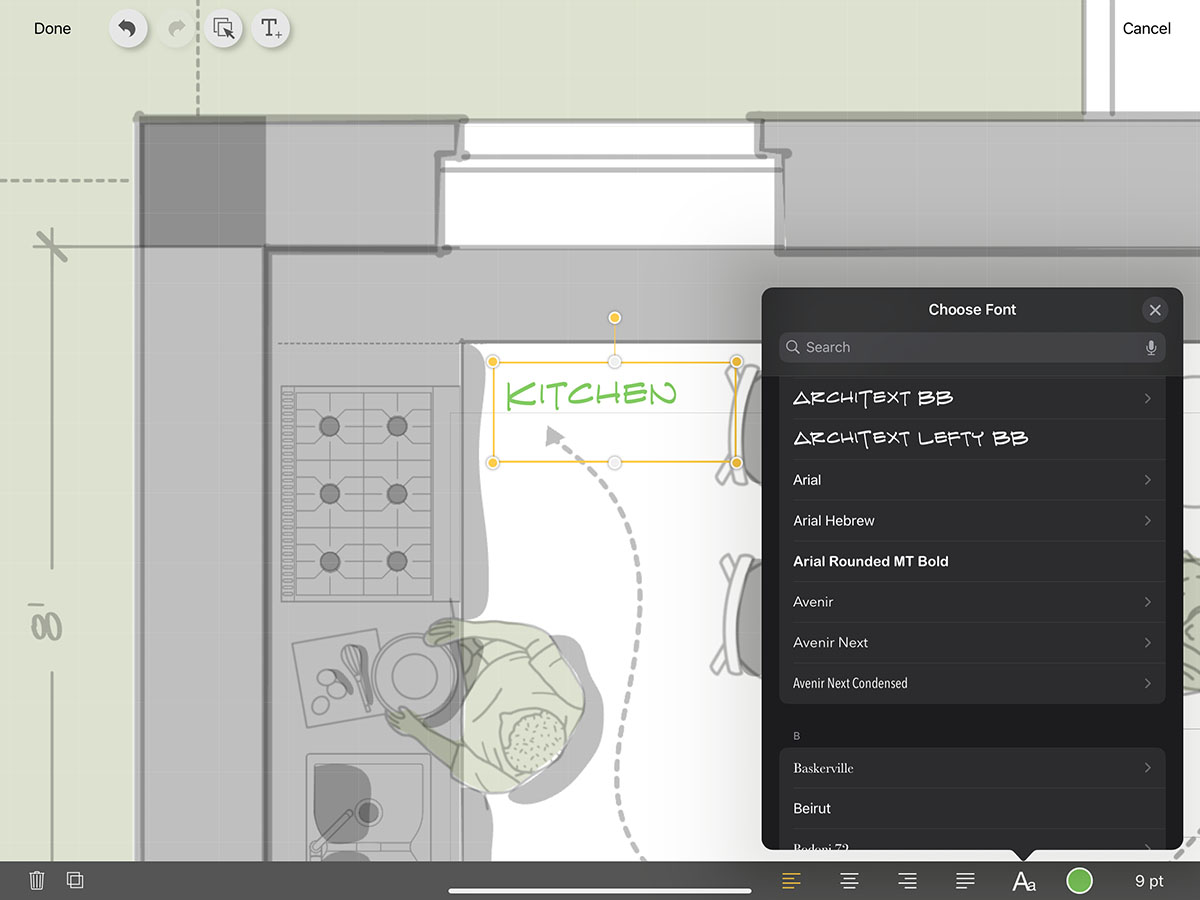 Tap "Done" to save your changes, close the Text Edit Mode, and return to your drawing. If you tap "Cancel," you will discard all changes.