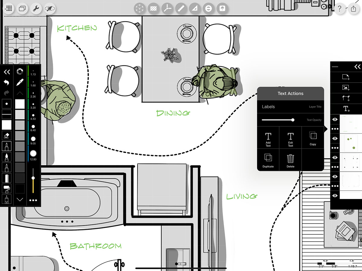 Text Layers are designed specifically for architects, interior designers, and landscape professionals — so you can communicate with clarity, precision, and style. You only need one text layer for all the text you want to add to your drawing but you can always add more. You batch edit, modify, copy, duplicate, clear, or delete your text.