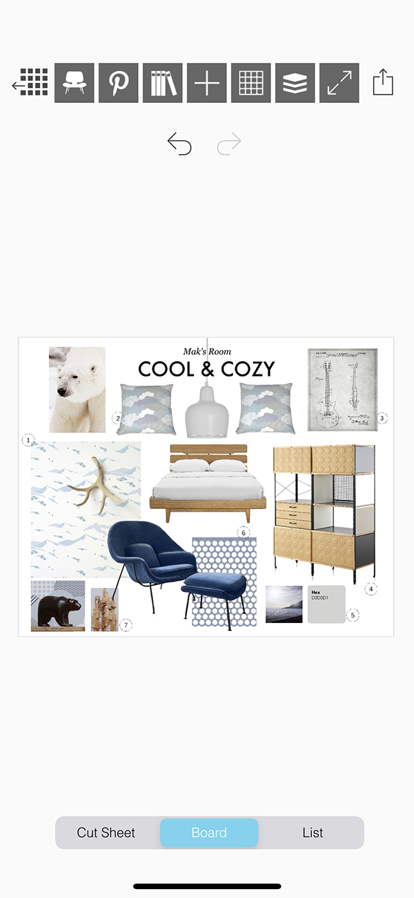 After you finish your interior design or creative moodboard, you can share it as an image, PSD, or project file with any collaborator or client.