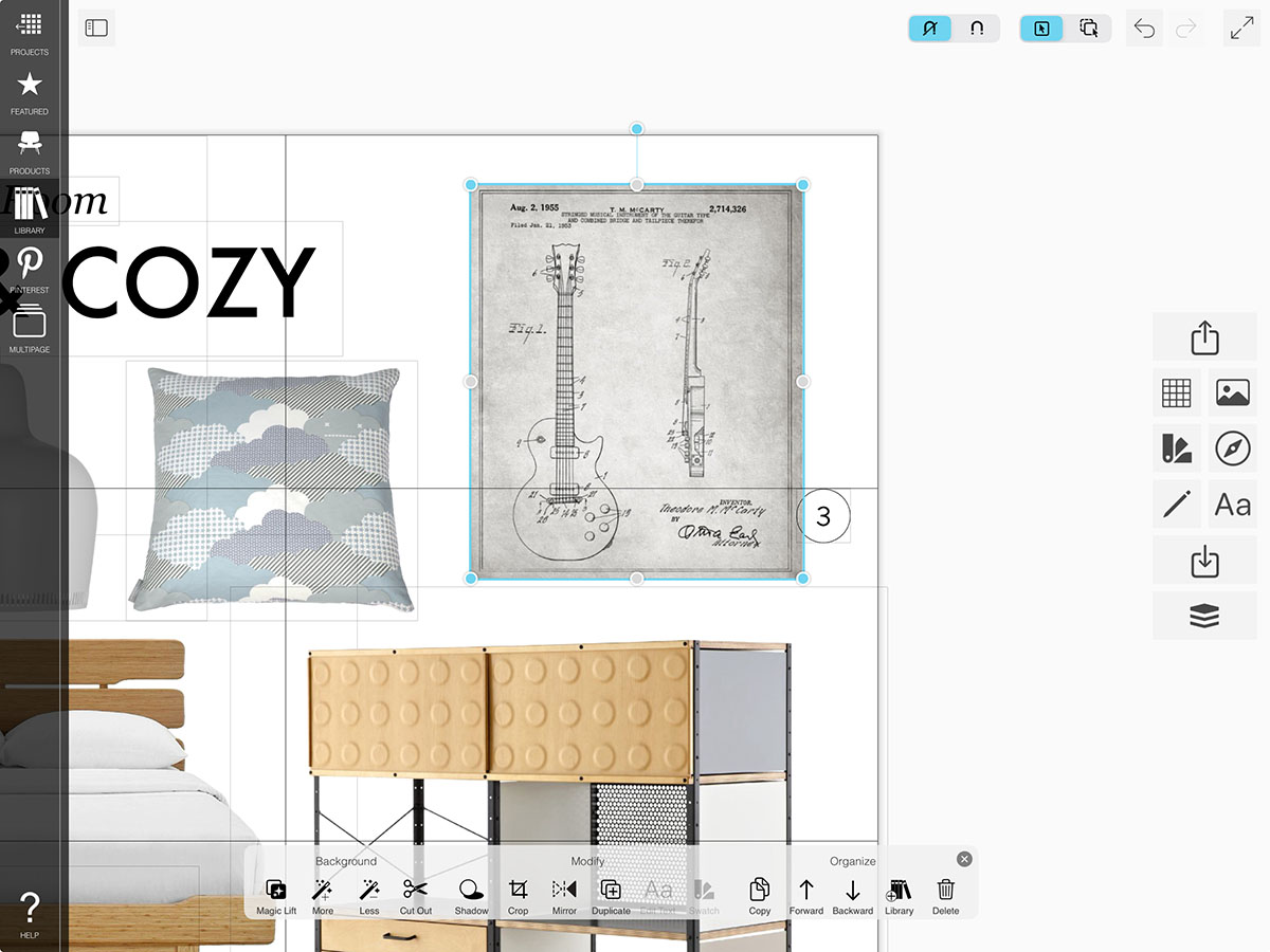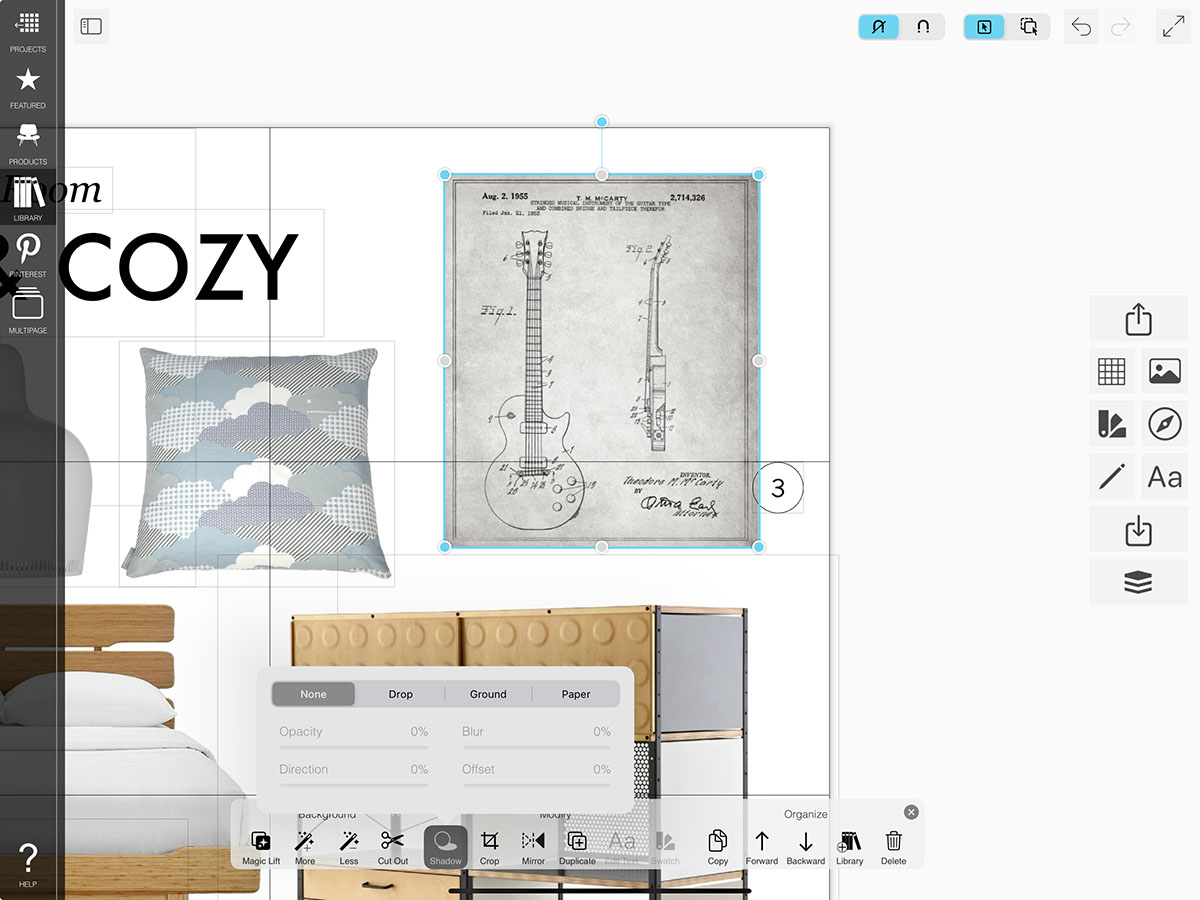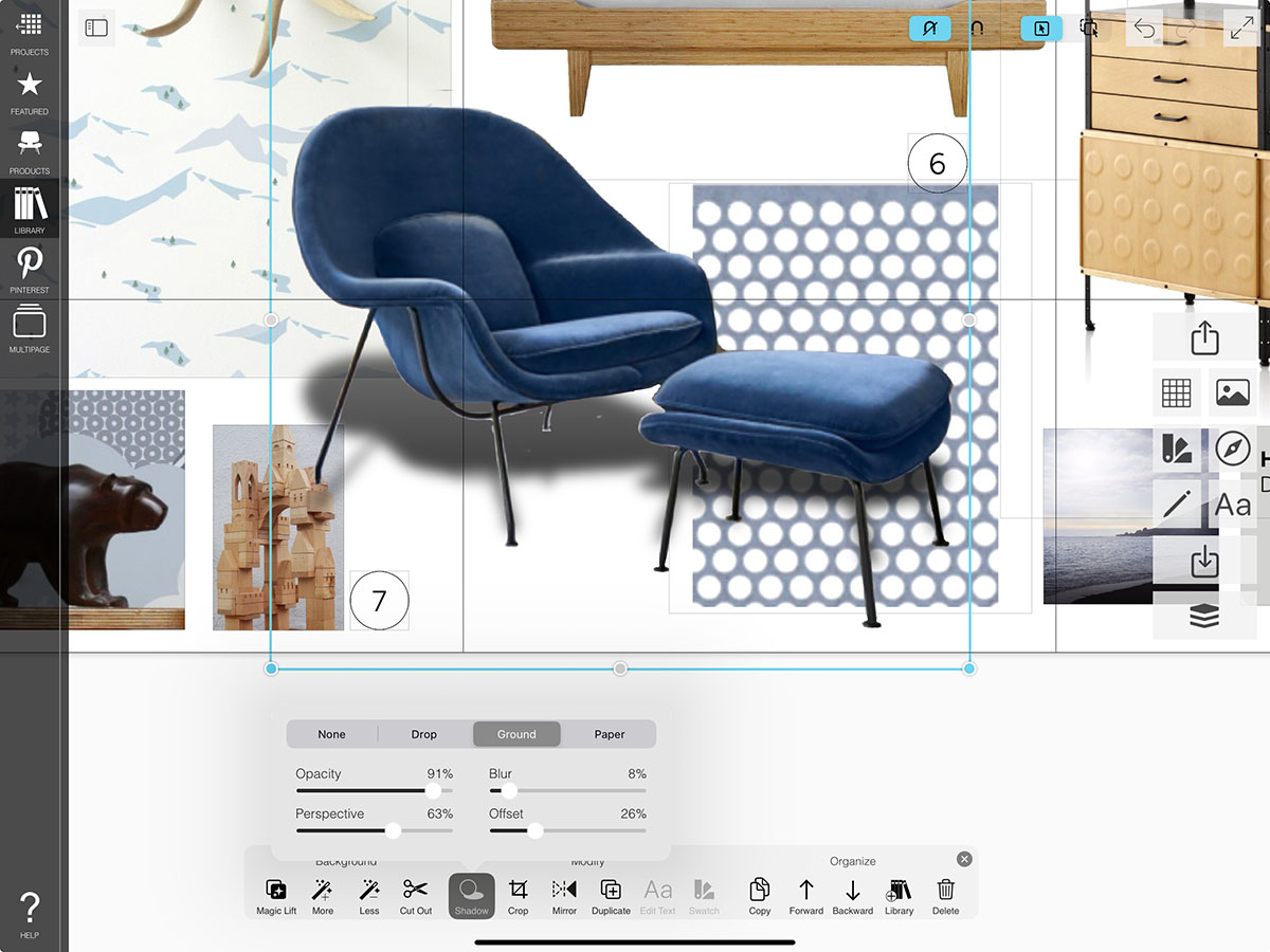 Would you like to add depth and a little polish to your mood and design boards? In Morpholio Board, the best app for interior design, you can add shadows to your images to help your designs pop off the page!