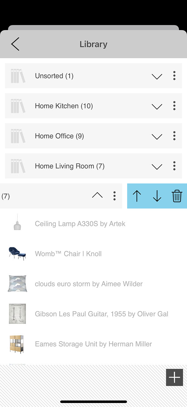 To save products from your board to your personal library, tap on an image to select it. Then, tap the Add to Library button in Super Tools at the bottom. The product will automatically be added to an "Unsorted" folder for you to organize later.