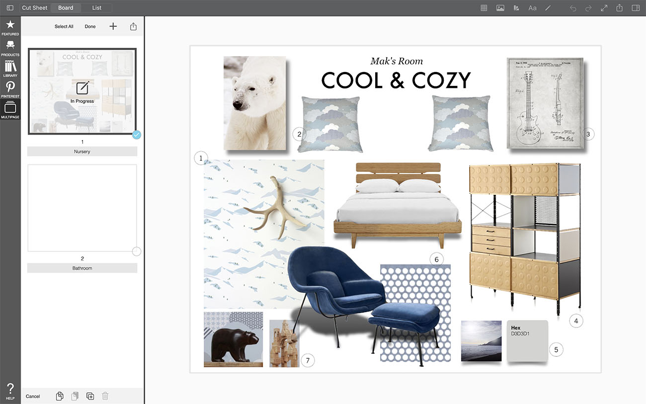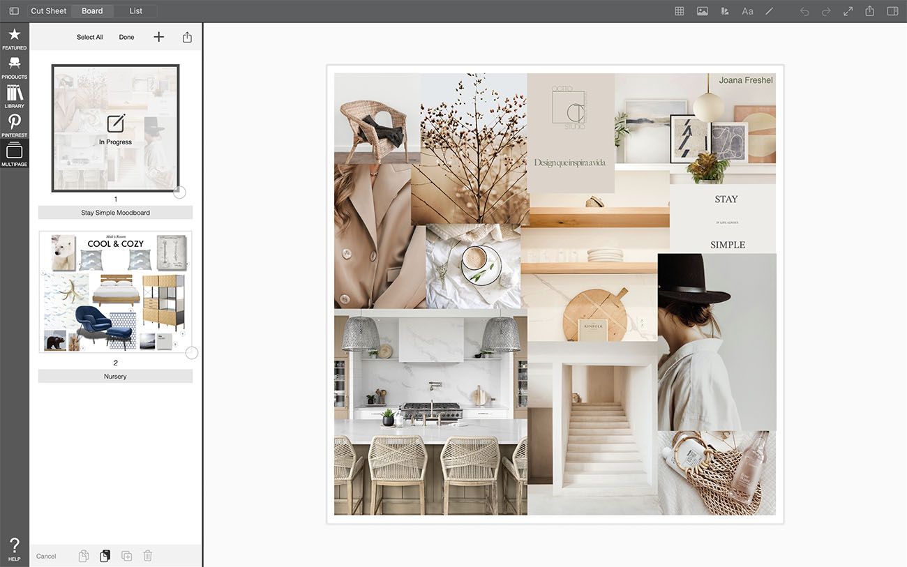 While working on interior design boards, sometimes you need to copy an entire pages from one project to another. You can quickly and easily do this in Morpholio Board.