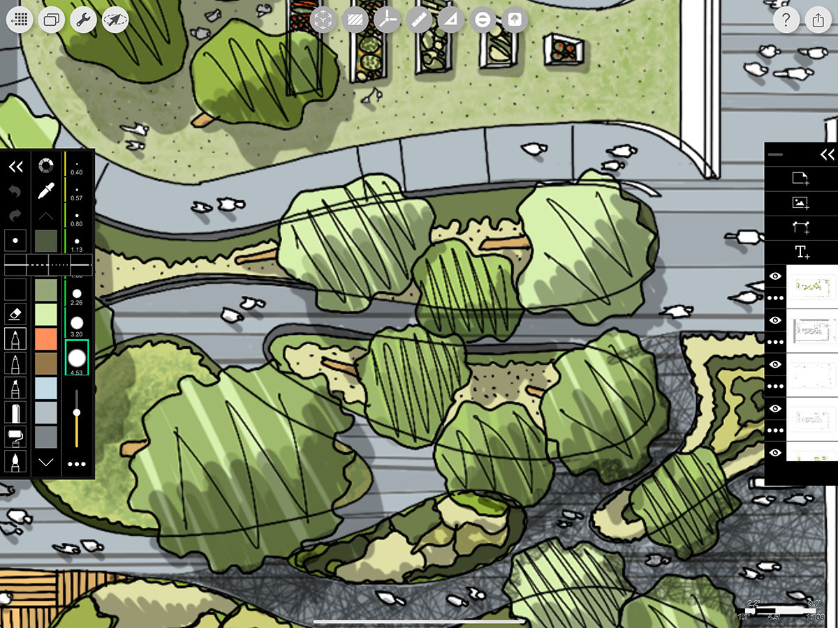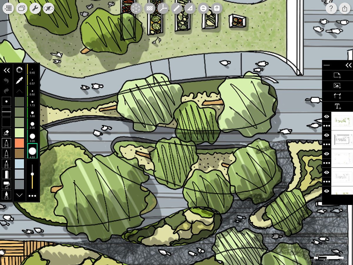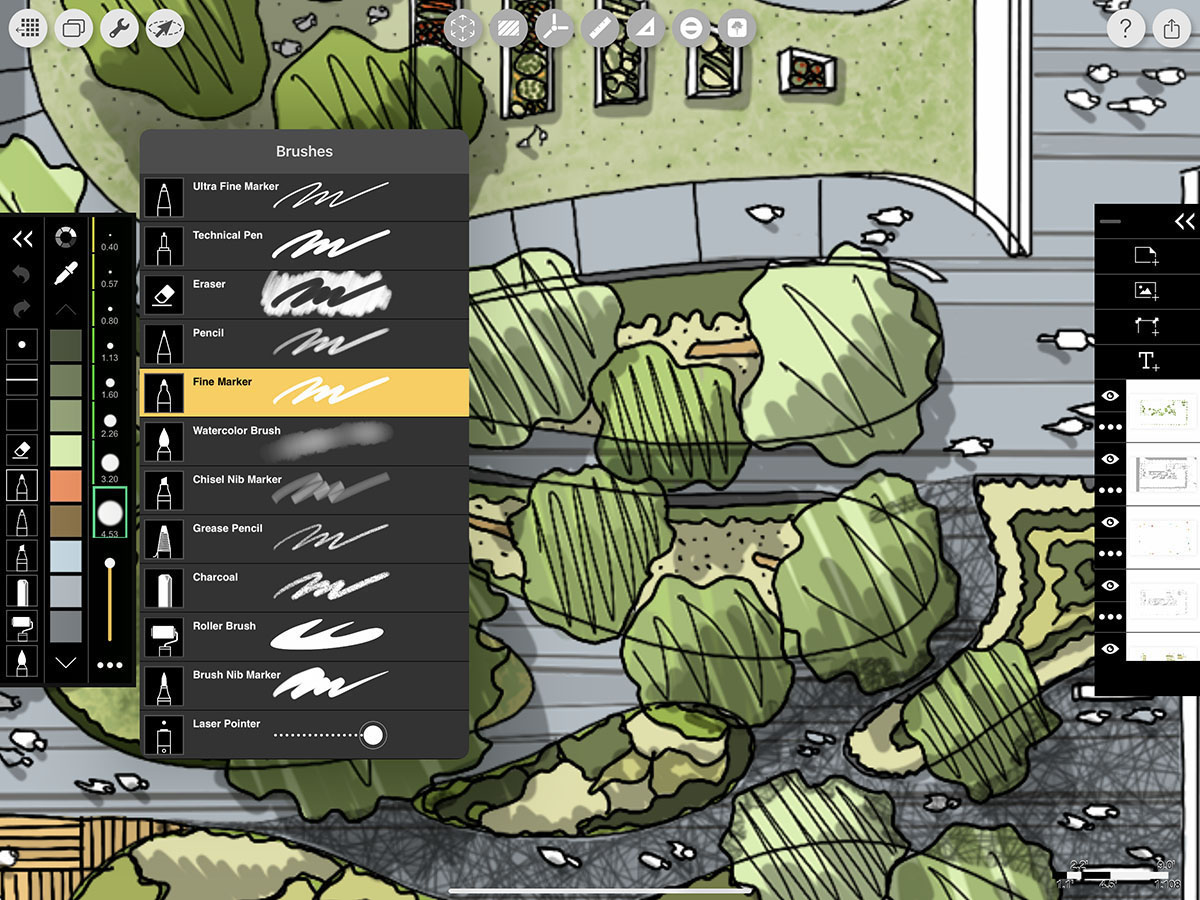 To start any architecture, interior design, landscape, industrial design concept sketch, or any drawing at all, you always need to collect your favorite pens. The same goes for starting a new project in Trace. In the 5 quick steps below you'll learn how to set up your perfect pen set by choosing the type, size, color, and opacity for each pen in your Pen Toolbar.