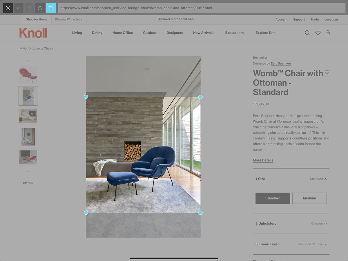 Inspiration can come from anywhere but one of the easiest places to get inspired is online. With the web clipper, you can add images from any website and once they're added to your board, they automatically link back to the product website.