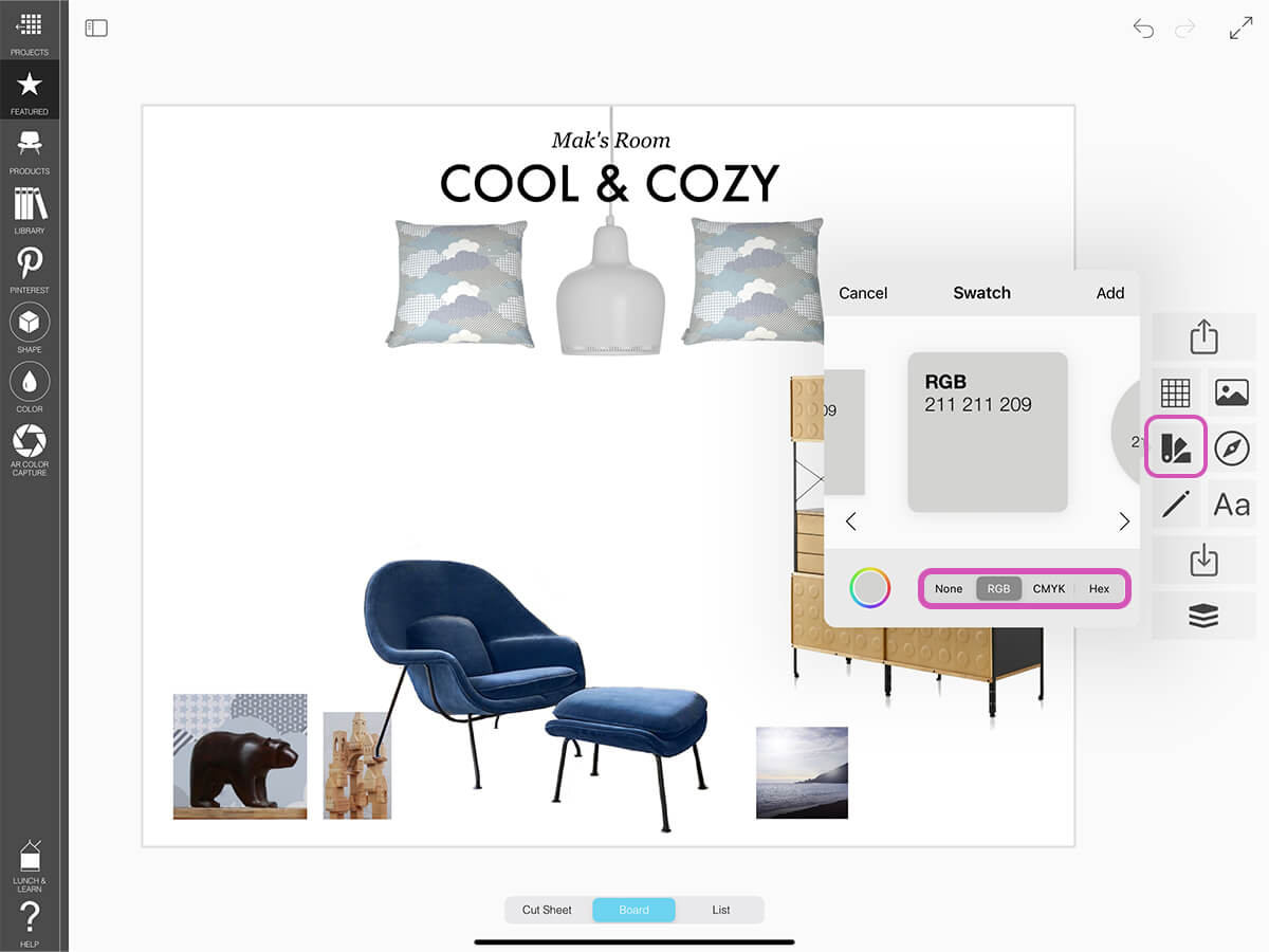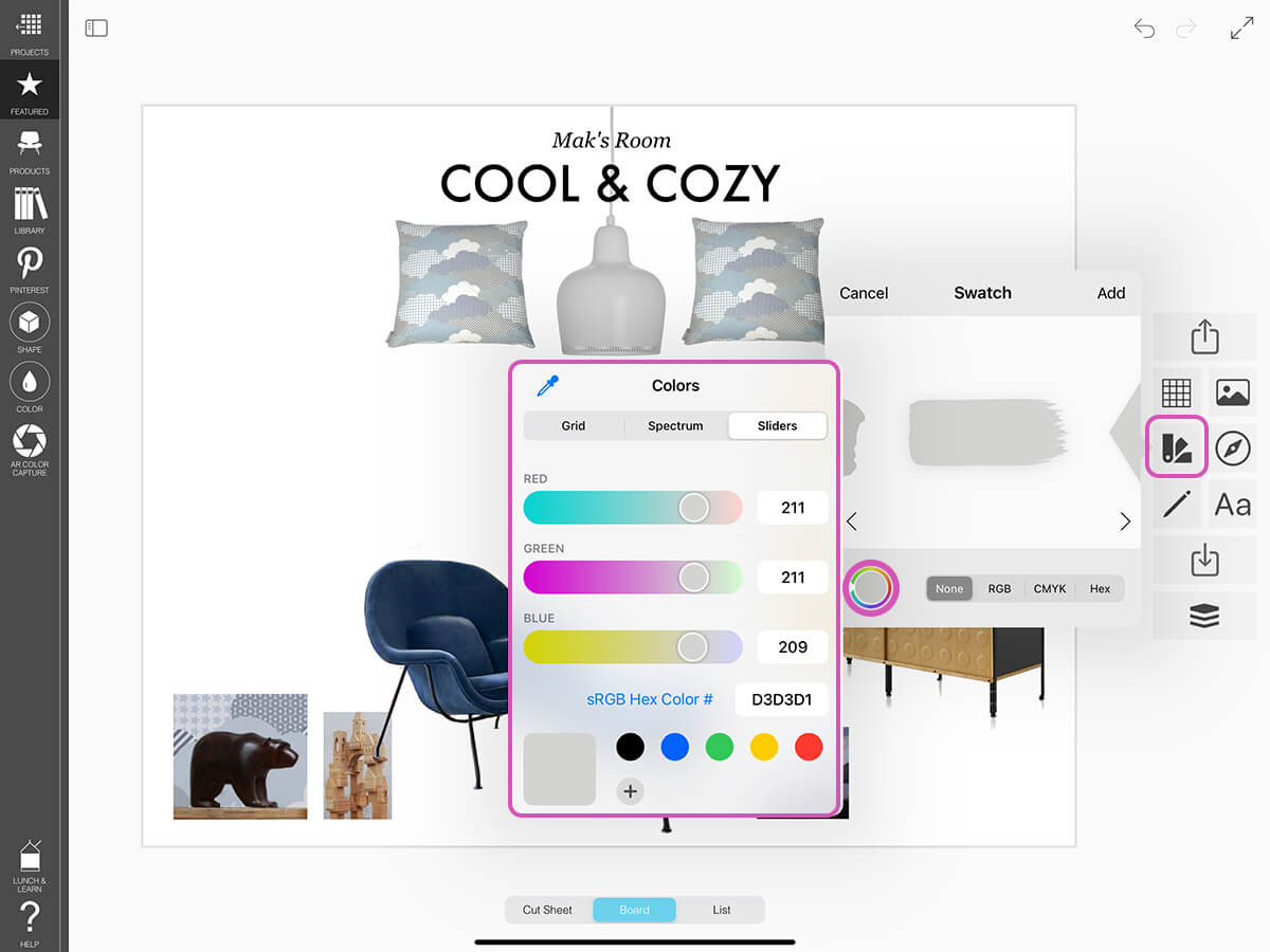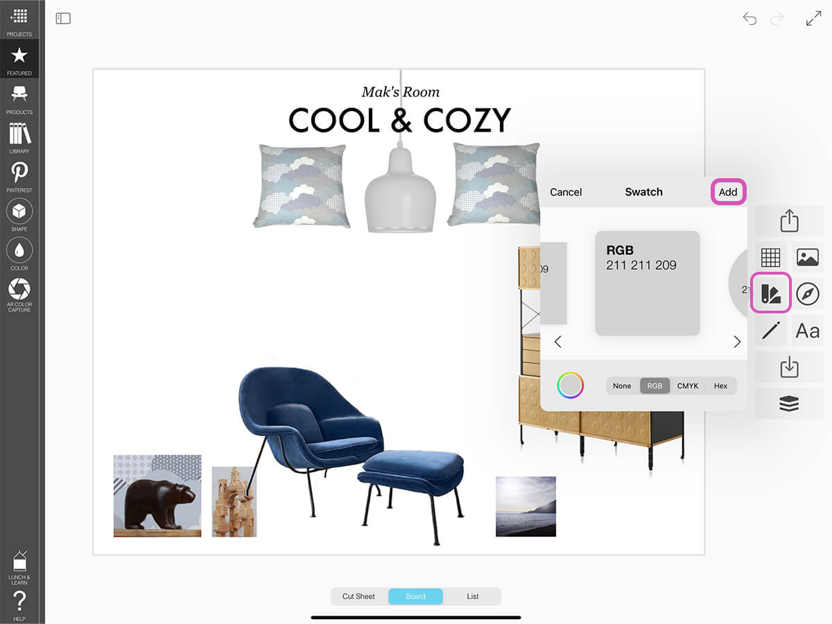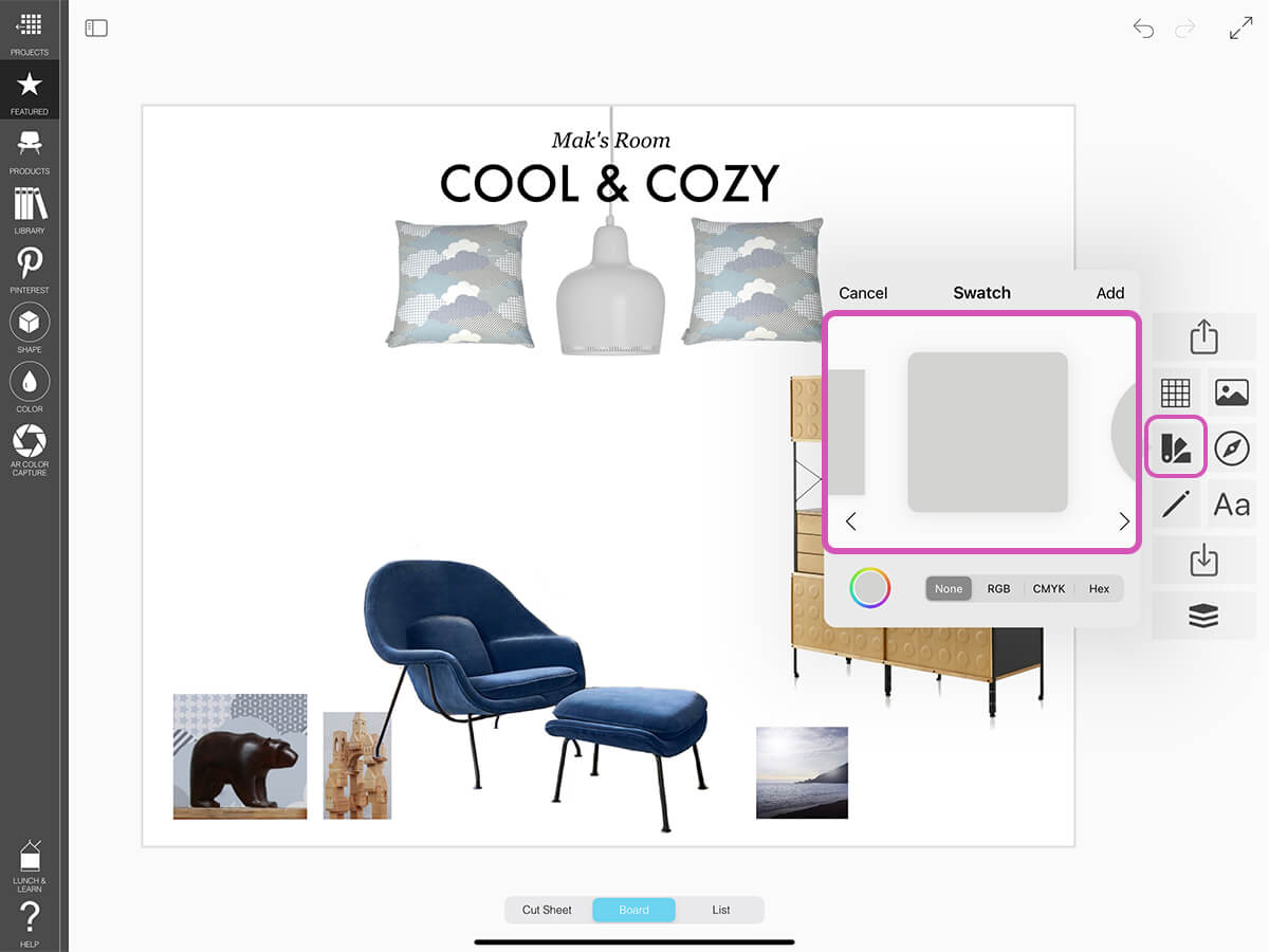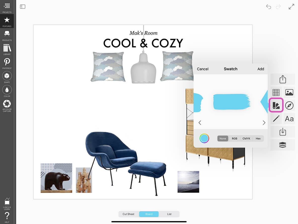 Now that you set up your perfect swatch, tap "Add" to insert your swatch onto your board.