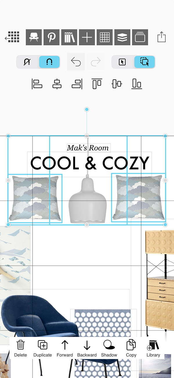 Now you can tap Delete, Duplicate, Move Forward, Move Backward, Add Shadow or Add to Library to apply each action to all of the selected items.