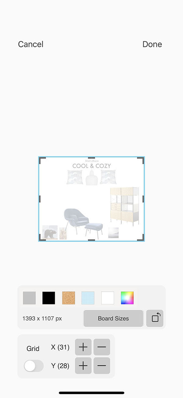 Tap "Done" to confirm your changes and return to the mood board work space.