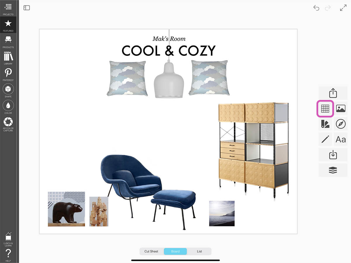 Before you begin moodboarding or collaging, you need to set up your canvas. Using a grid will help keep all of your interior design mood board neat and organized, too!