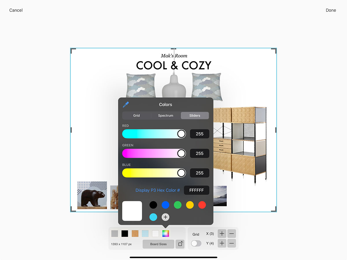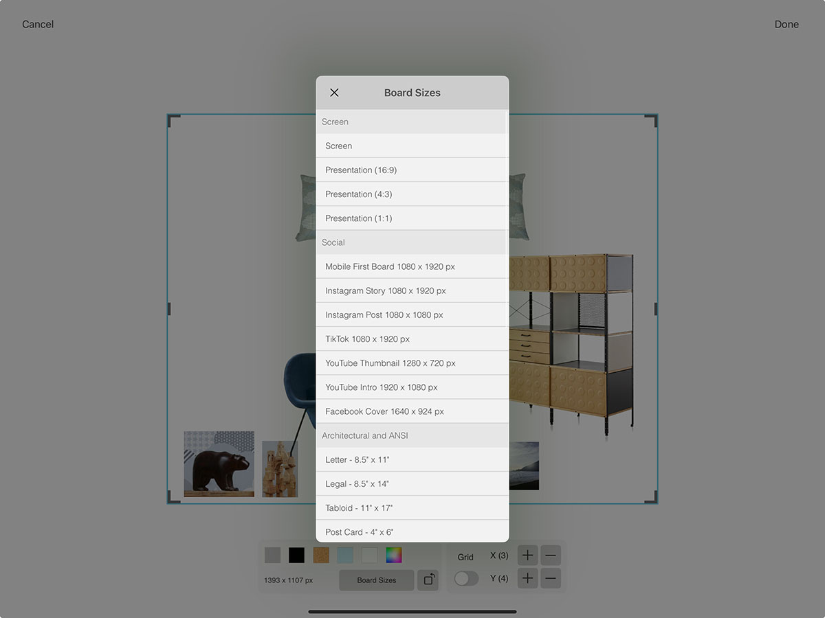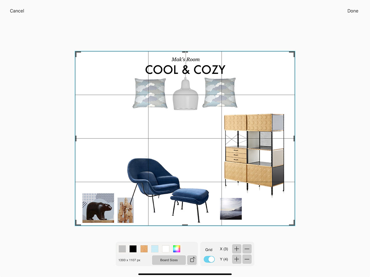 Tap "Done" to confirm your changes and return to the mood board work space.