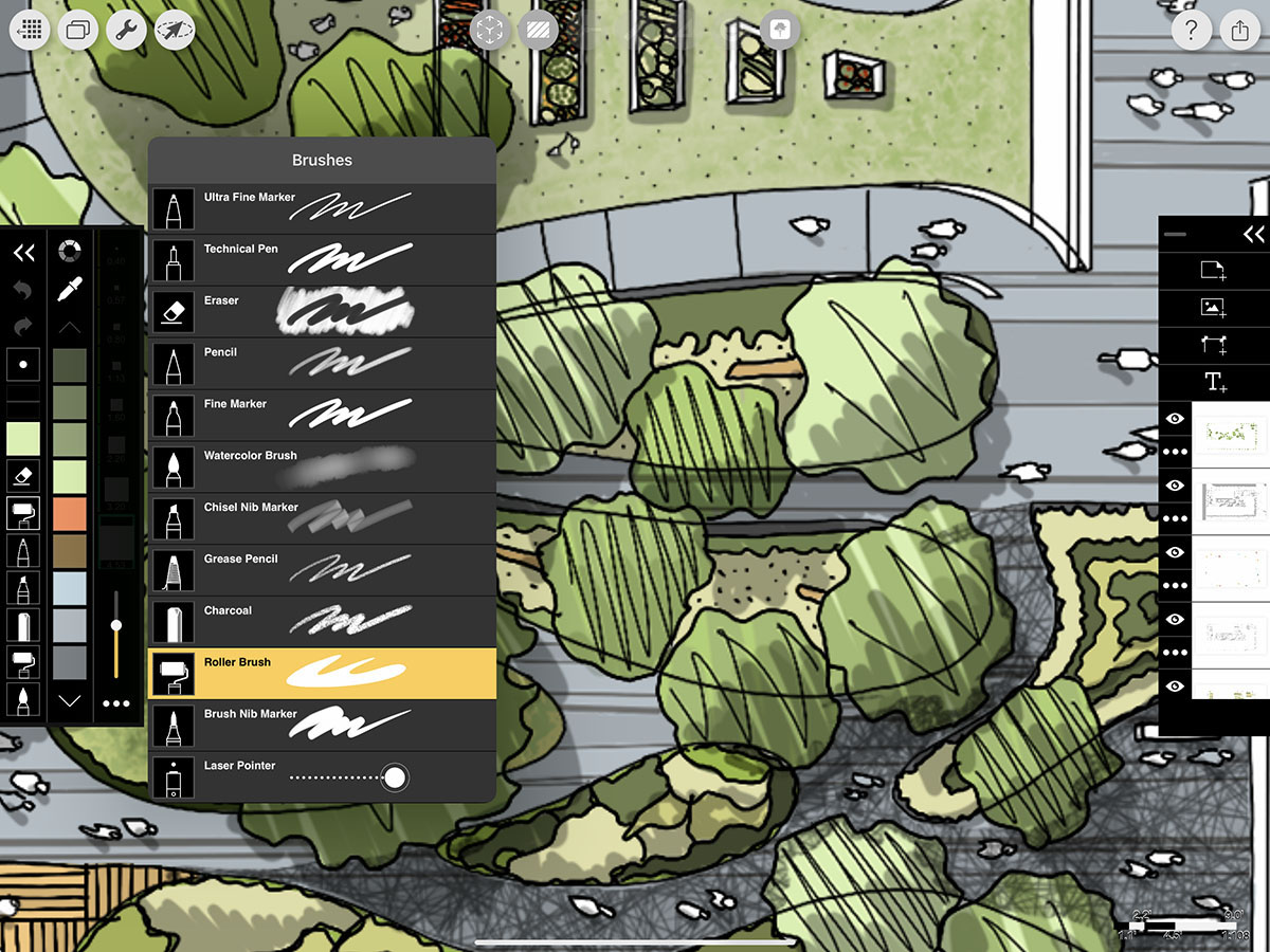Tap any of your pens and then tap on the Roller Brush button.