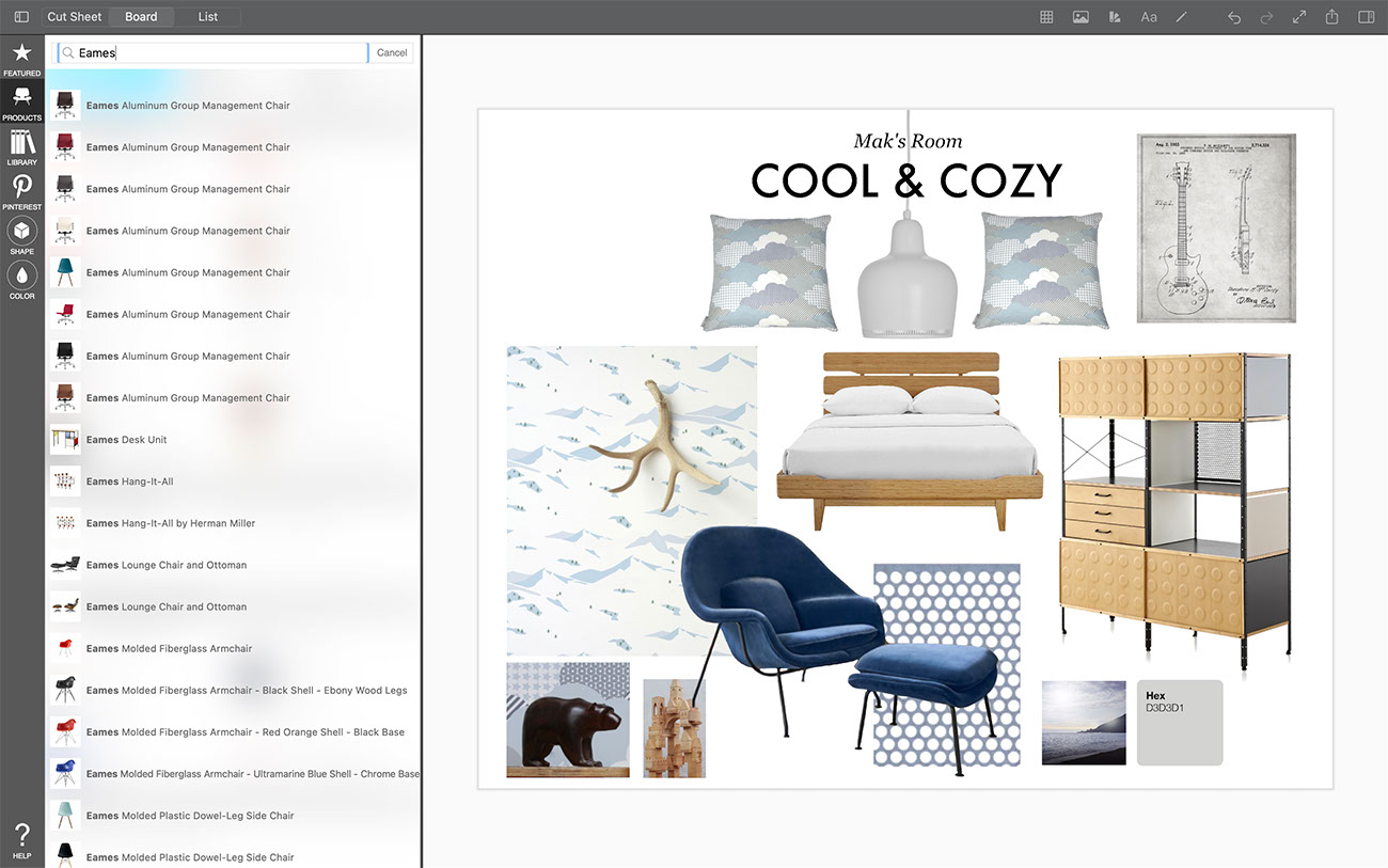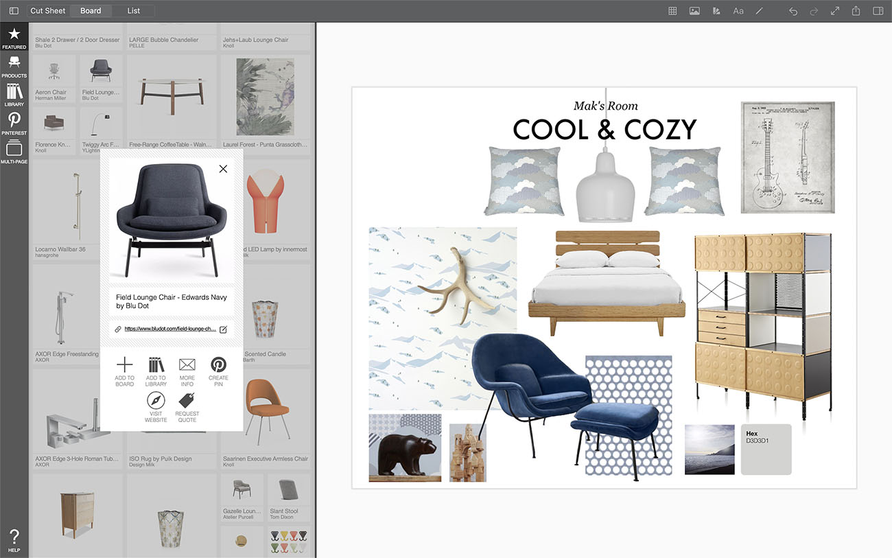 Click on any Product to open the product actions panel. Add the product to your board, your personal library, pin it to Pinterest, get product details and much more.