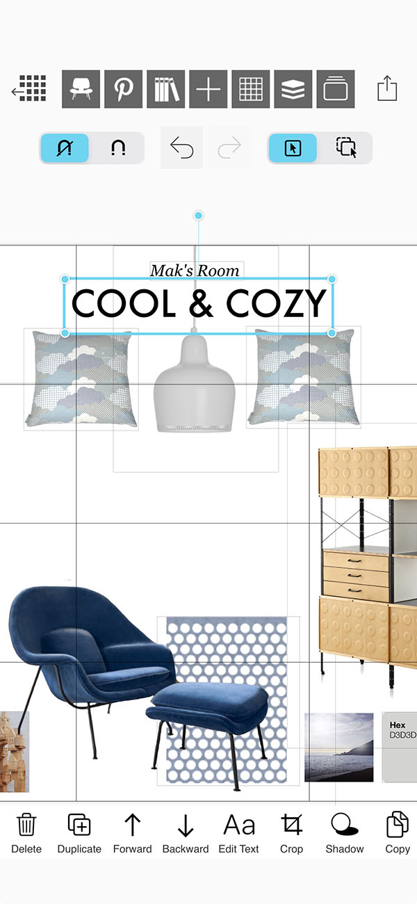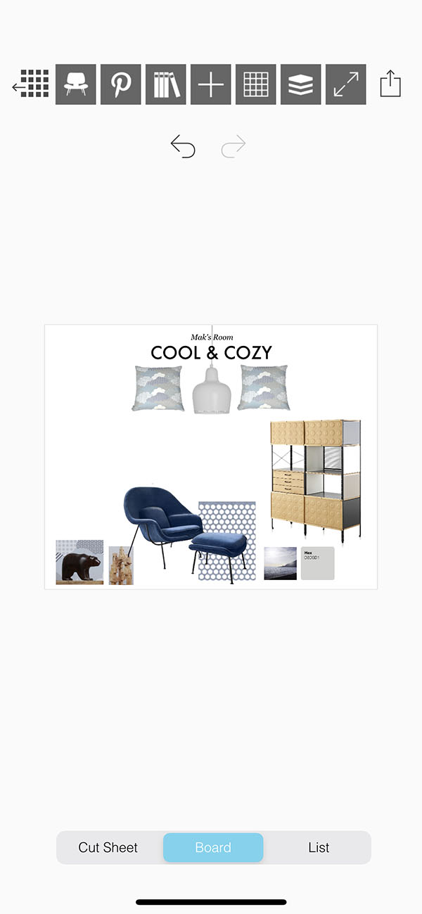 Although the images tell the story of your interior design moodboards, adding relevant labels, captions, and titles is extremely important to help direct your audience.