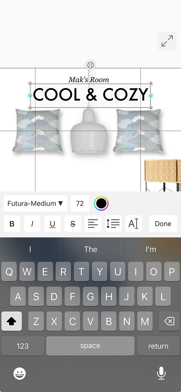 Tap the text box on your board and then tap the Edit Text button in the image toolbar to edit your text.